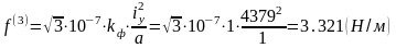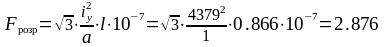 Найбільше динамічне зусилля при трифазному КЗ діє на провідник середньої фази. Його розраховують за формулою: