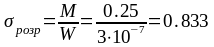 Визначаємо величину напруження в матеріалі шини, що виникає в наслідок дії згинаючого моменту.