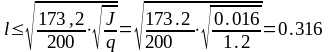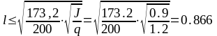 де l – довжина прогону між ізоляторами, м; J – момент інерції поперечного перерізу шини відносно осі, перпендикулярної до напрямку згинаючої сили, см4; q – поперечний переріз шини, см2.