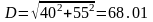 де D - велика діагональ чотирикутника з блискавковідводами в його вершинах.