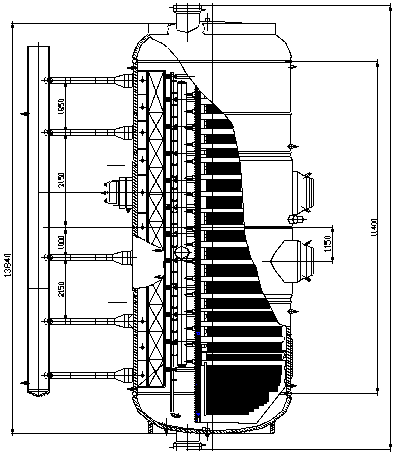 Тип парогенератора – горизонтальний однокорпусний з зануреною поверхнею теплообміну з горизонтальним розташуванням труб. ПГ складається з наступних основних вузлів: корпуса, колектора роздачі основної живильної води, пристрою роздачі аварійної живильної води, теплообмінної поверхні і колектора першого контуру, сепараційного пристрою, пристрою вирівнювання парового навантаження, опорних конструкцій зрівняльних сосудів, гідроамортизаторів (малюнок 1.4).