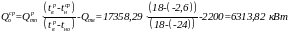 Вследствие не круглосуточной работы предприятия, рассчитывается нагрузка дежурного отопления для средней и расчетной температур наружного воздуха, по формуле: