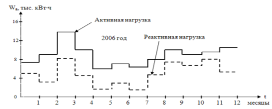 На рисунке 1.1 приведены графики потребления активной и реактивной электроэнергии потребителями центрального отделения учхоза «Кокино» в 2006 г.