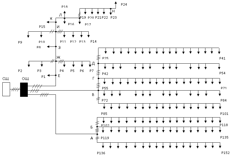 Компоновка осветительной сети представлена на рисунке 2.1.