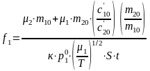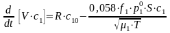 где V – объем сплаве в испарителе; S – площадь поверхностного испарения; c1 – концентрация компонента в испарителе (моль/ед. объема); c10 – концентрация компонента в подаваемом материале (моль/ед.объема); R – скорость подачи материала (моль/с).