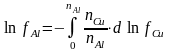 . Коэффициент активности алюминия в сплавах Сu-Аl определялся по коэффициенту активности меди графическим интегрированием известного уравнения Гиббса-Дюгема, для данной системы имеющего вид: