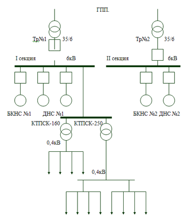 Рис.2.1. Обобщённая схемa электроснабжения месторождения