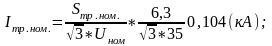 Iтр.ном. номинальный рабочий ток трансформатора