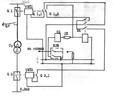 На ОРУ подстанции "Шершнёвская", на каждой линии установливаем шины высокого напряжения( ошиновку выполнить алюминиевым проводом А-50) шины между линейными MB и трансформаторами, а так же подсоединение секционного масляного выключателя выполняем алюминиевыми трубами диаметром 60мм. На каждой секции шин устанавливаем линейные масляные выключатели, шины секционируются между собой масляным выключателем. Для защиты от перенапряжений на шинах устанавливаем разрядники типа РВС и трансформаторы типа 2НОМ-35. К секциям шин подключаются силовые трансформаторы через масляные выключатели, которые, путем гибкой ошиновки, подсоединяются к шинным вводам комплектного распределительного устройства (КРУ) на 6,3кВ и оборудуются двадцатью пятью шкафами выкатного типа марки К-59. Вывод осуществляется как через шинные, так и через кабельные вывода. Каждый шкаф оборудован АПВ однократного действия с моторно-пружинным приводом. Секции шин 6кВ (1 и 2) секционируются между собой масляным выключателем. К каждой секции шин подключаются измерительные трансформаторы напряжения типа НТМИ 6,3 и вентильные разрядники типа РВ0-6, а также трансформаторы собственных нужд типа ТМ-25/6.