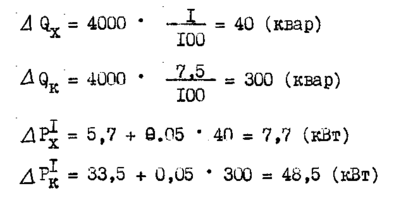 Определим приведенные потери в параллельно работающих трансформаторах по выражению: