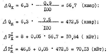 Определяем приведенные потери в одном трансформаторе 6,3MВA: