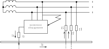 Рисунок 6.3. Принципиальная схема защитного заземления в сети с изолированной нейтралью до 1000В и выше.