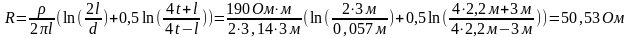 Для расчета одиночного вертикального электрода воспользуемся выражением:
