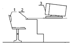 Рисунок 6.4 - Основные элементы рабочего места: 1 - рабочее кресло; 2 - рабочая поверхность; 3 – ЭВМ.