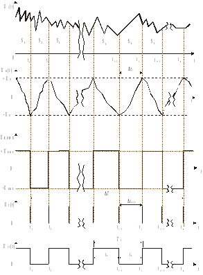 На графике (рисунок 2.7) вольт-секундная площадь, находящаяся под кривой текущих значений напряжений входного сигнала UВХ(t), пропорционального току электролиза, отражает процесс накопления заряда (количества электричества), который происходит при протекании тока через нагрузку в течение определенного времени. Эта площадь разделена на множество равных площадок S0, соответствующих "квантам" количества электричества q0, каждый из которых формируется за один такт интегрирования.