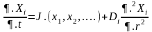 де перший член дає внесок хімічних реакцій в зміні концентрації Хi і зазвичай має простий полиноминальный вигляд, а другий член означає дифузію уздовж осі r.