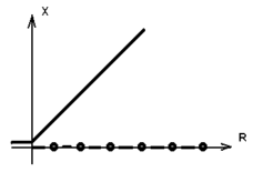 Ясно що при R < 0 існує тільки одне рішення, незалежне від часу, X = 0. У точці R = 0 відбувається біфуркація, і з'являється нове рішення X = R.