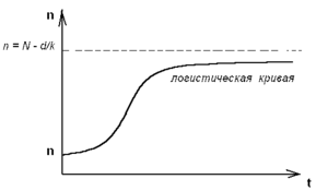 ,то є n1 - гранична чисельність вигляду в даному місці існування . Інакше кажучи, параметр n1 характеризує ємкість середовища по відношенню до даної популяції . І нарешті, параметр (kN - d) задає крутизну початкового зростання.