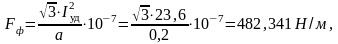 Усилия между фазами при протекании тока трёхфазного К. З.,