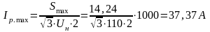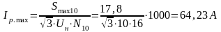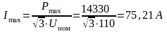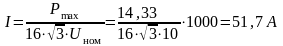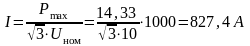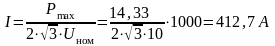 Максимальный рабочий ток на отходящих кабельных линиях: