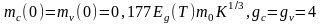 де K=12, mc(0) маса електрона в зоні провідності, mv(0) маса дірки в валентній зоні, m0 маса вільного електрона, Eg ширина забороненої зони [4]:
