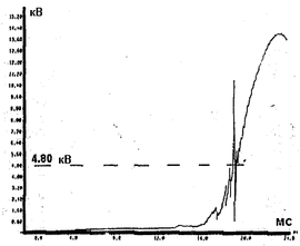 Рис. 1.11. Осциллограммы тока Рис. 1.12. Напряжение на дуге в короткого замыкания и напряжения момент отключения.
