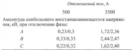 Расчеты показывают, что восстанавливающиеся напряжения при отключении генераторного блока в двигательном режиме, хотя и зависят от отключаемого тока (500 или 3500 А), но существенно ниже нормируемой величины ПВН (переходного восстанавливающегося напряжения).