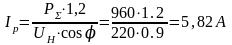 Выбираем АЕ2016 Iу=6А и сечение провода 2АПВ2,5 с Iдоп=19А