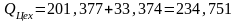 Нагрузка по допустимому нагреву по активной и реактивной мощности цеха: