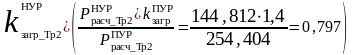Аналогично коэффициент загрузки трансформатора №2 в НУР-е :