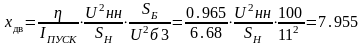 - параметры синхронных двигателей (Sд=4.25 МВА, Uн=10.5 кВ, Iпуск=6.68, з=0.965):