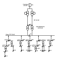 В качестве точек короткого замыкания рассматриваем шины высокого и низкого напряжения цеховых подстанций, а также шины высокого и низкого напряжения ГПП. Расчет будем вести как для нормального режима сети для самых тяжелых режимов работы схемы электроснабжения – замкнутым секционным выключателем на шинах ГПП на стороне 35кВ и 10 кВ. в. Этом случае принципиальную схему питания предприятия на напряжении 35 - 10кВ можно представить на рисунке 8: