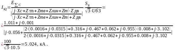 | Точка | I(3)K, кА | I(2)K, кА | Ta , c | Kуд | iуд.норм. кА | iуд.авар. кА |