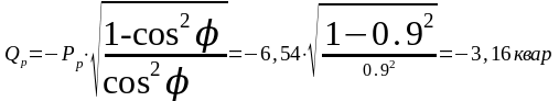 =0,9 соответственно заданию. Коэффициент мощности является опережающим, поэтому реактивная мощность принимается со знаком минус.