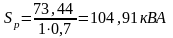 U=10-0.4 кВ, II категория, S ‘max= 73.44 кВА, Кз=40%., n = 1.