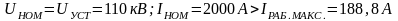 Определяют КР110. Выбор разъединителей также осуществляют по номинальному напряжению и току: