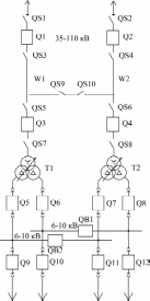 Находят КОБ110. Для определения капиталовложений по сооружению подстанции 110 кВ необходимо выбрать силовой трансформатор (Т1 и Т2), выключатель (Q1, Q2, Q3 и Q4) и разъединитель (QS1 – QS8).