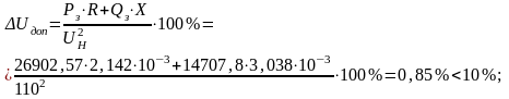 4. Проверяют сечение провода по падению напряжения в линии в нормальном и послеаварийном режимах: