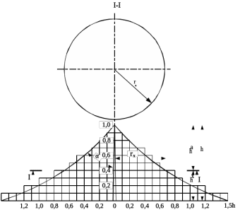 Рисунок 11.1 Зона защиты одиночного стержневого молниеотвода