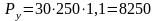 Робщ = n ∙ Рл = 30 · 250 = 7500Вт,
