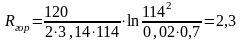 где l = 114 – длина горизонтального электрода, м; t = 3,2 – глубина заложения, м; dЭ – эквивалентный диаметр электрода, м;
