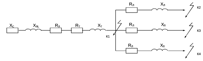 Далее был произведен выбор сечением проводов ВЛ-10кВ и ВЛ- 0,4 кВ; рассчитаны токи КЗ, где были выбраны: расчетная схема и схема замещения, и определена точка опасности К1, так как в этой точке сосредотачиваются все нагрузки и преобразования электрической энергии.