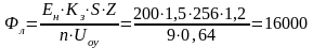 Рассчитываем световой поток одной лампы (Фл), без учёта коэффициента запаса: