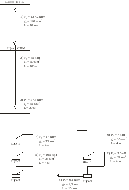 1) Знаходимо падіння напруги до щитка освітлення ЩО-1