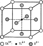 Більш складним прикладом може служити так звана структура перовскита, що формується при кристалізації деяких багатоатомних сполук, наприклад сполуки кальцію, титана і кисню СаТіО чи калію, магнію і фтору KMgF3. У першій з приведених сполук (мал. 3) двозарядні катіони кальцію Са2+розташовуються у вершинах куба, чотиризарядні катіони титана Ti4+ — у центрі куба, а двозарядні аніони кисню -- в центрі граней куба. Якщо уявно «добудувати» до зображеного на мал. 3 кубу такі ж дотичні до нього з усіх боків і ребра, що мають спільні з ним, і грані, то легко помітити, що кожен катіон Са2 оточений дванадцятьма, а катіон Ti4+ - шістьма іонами О2- У свою чергу, кожен аніон О2- оточений чотирма катіонами Са2+ і двома Ti4+.