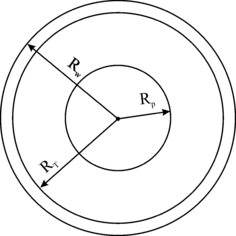 | Рис 3.4. Схематично представлена картина зон загрязнения – Rp, термического влияния – RТ и чистой воды – Rw для некоторого момента времени |