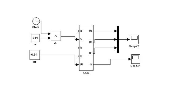 С целью упрощения модели представим её в виде 9 суперблоков. Первый суперблок моделирует переменные коэффициенты в уравнения для определения потокосцепления. Суперблоки 2,3,4,5 моделируют потокосцепление, 6,7,8 - фазное напряжение, 9-й – ток в обмотках возбуждения.