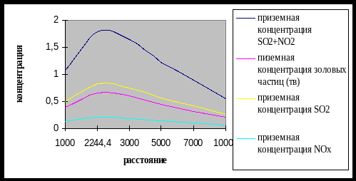 7.14.9 Определение концентрации вредных веществ в атмосфере по оси факела выброса на различных расстояниях от дымовой трубы