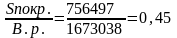 Sпокр. = В.р. - Зпер. = 1673038 – 916541 = 756497 тыс.тенге