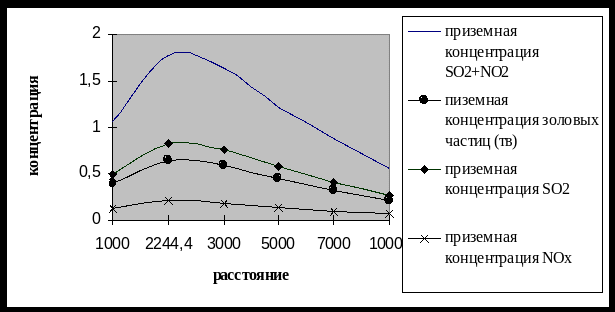 7.4.9 Определение концентрации вредных веществ в атмосфере по оси факела выброса на различных расстояниях от дымовой трубы